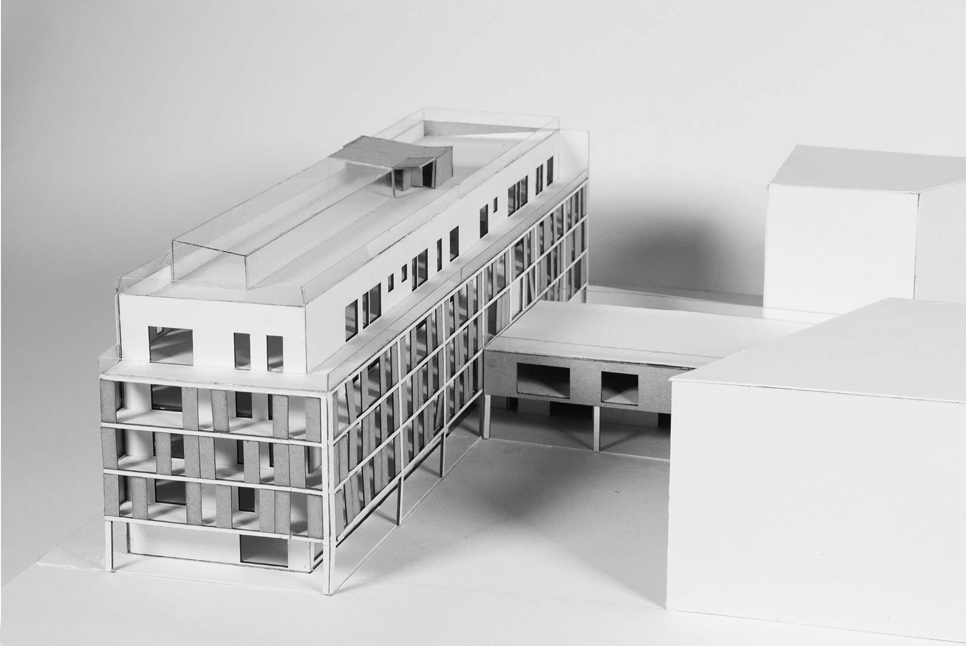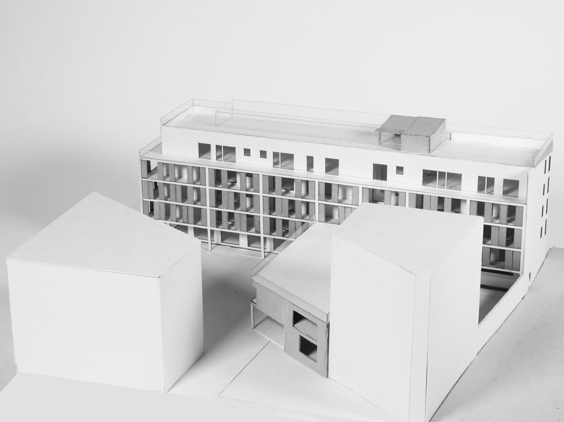 Building model at 1:100, west view.