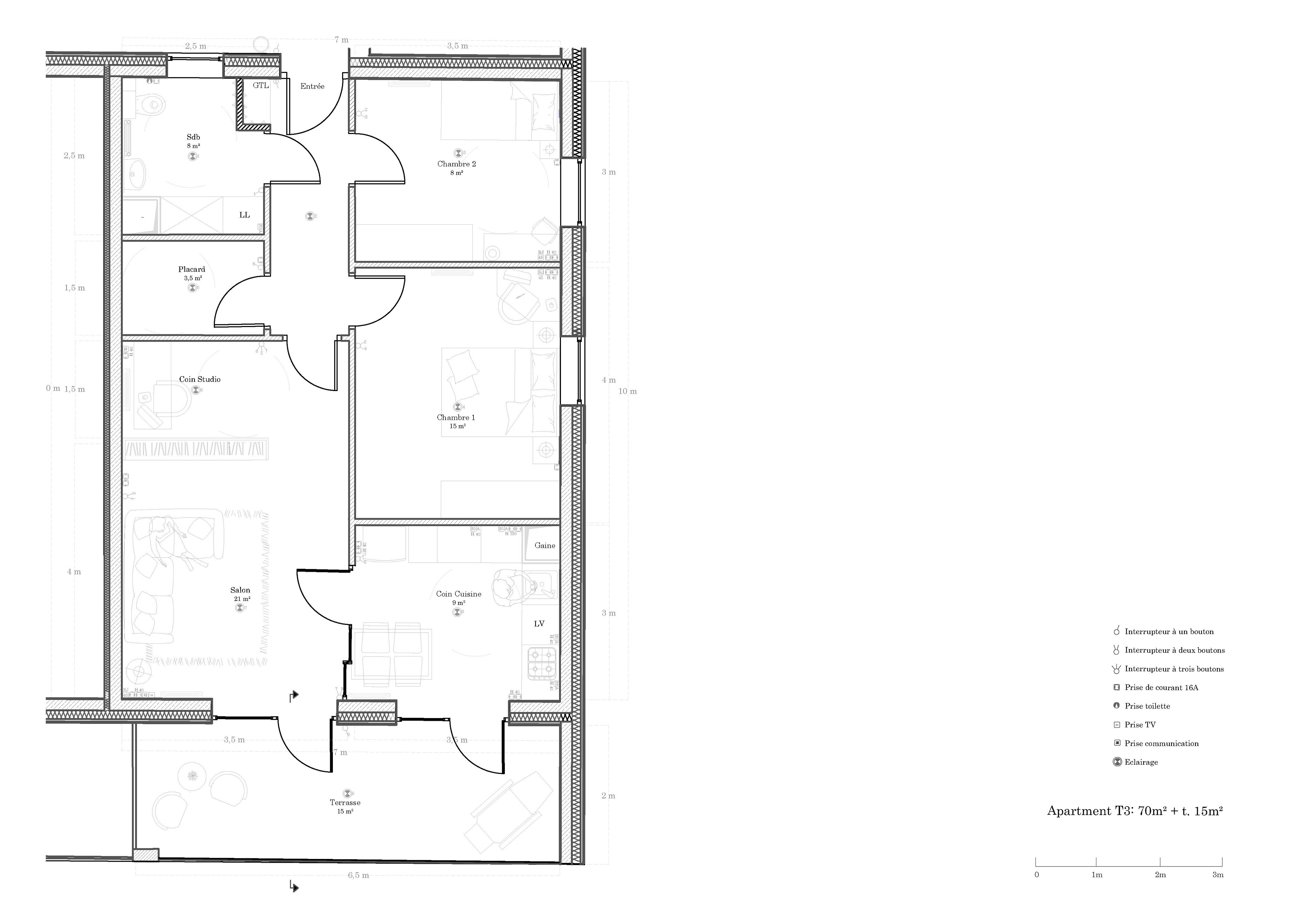 Detail Plan of T3 Apartment Typology.