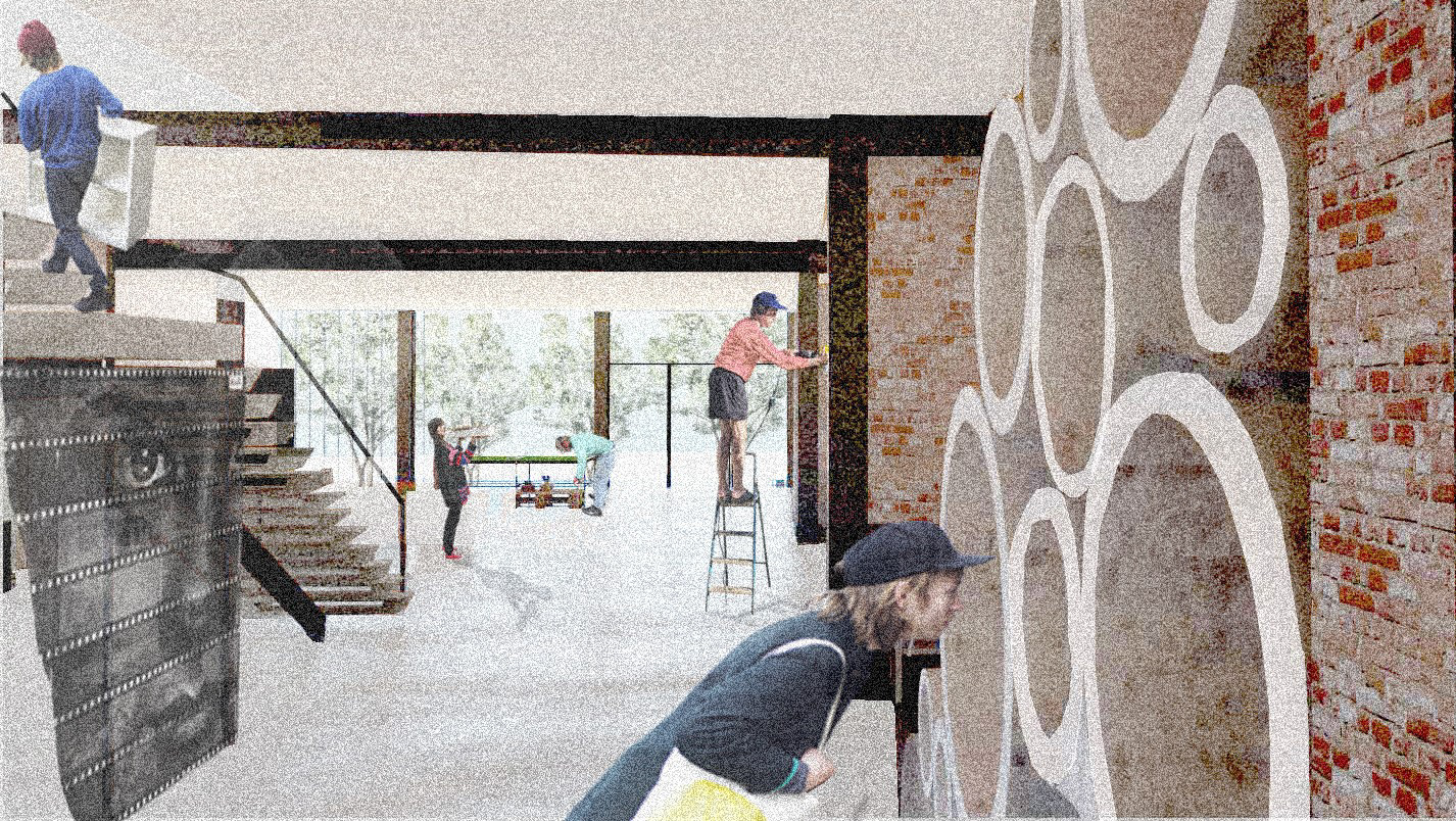 Interior render of the creative spaces on the ground floor.